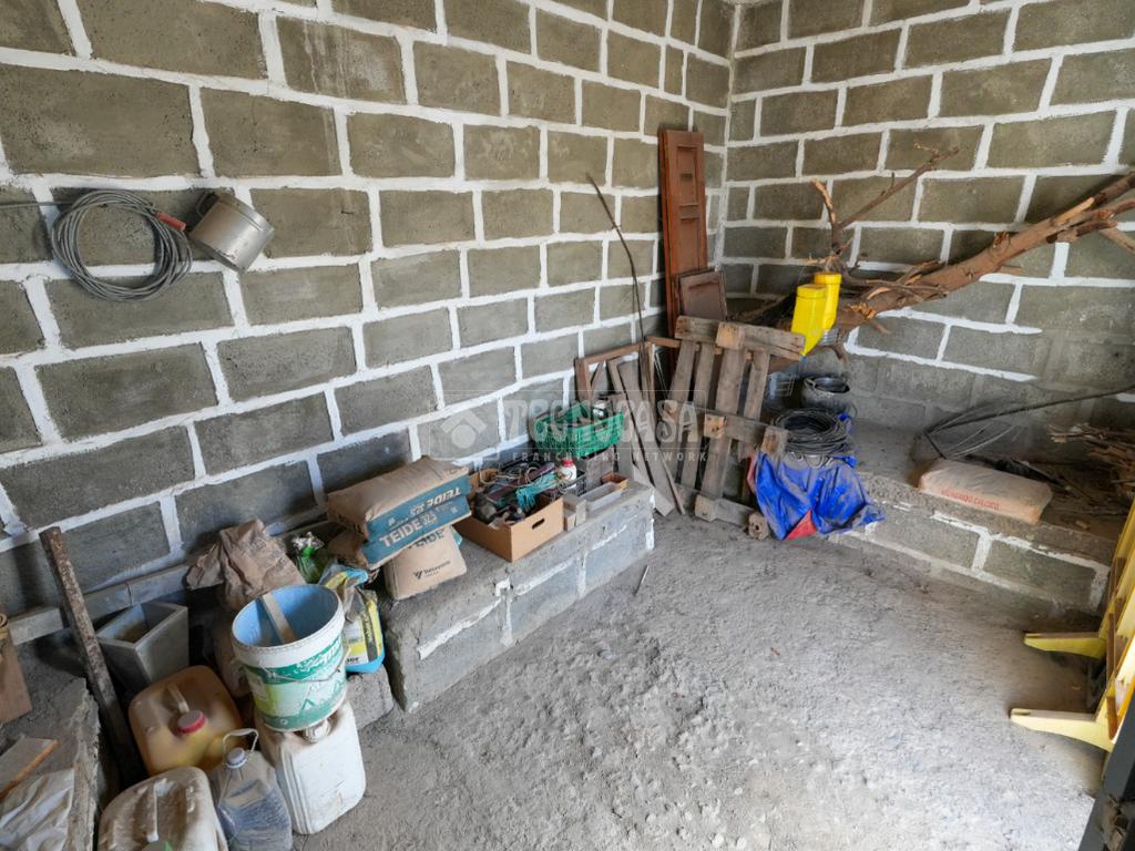 En la planta baja cuenta con sala de estar, cocina independiente, 1 baño y 8 habitaciones además de trastero. En la zona exterior tiene un amplio patio además de un bonito jardín cultivado con dos almacenes. También se encuentra un local.